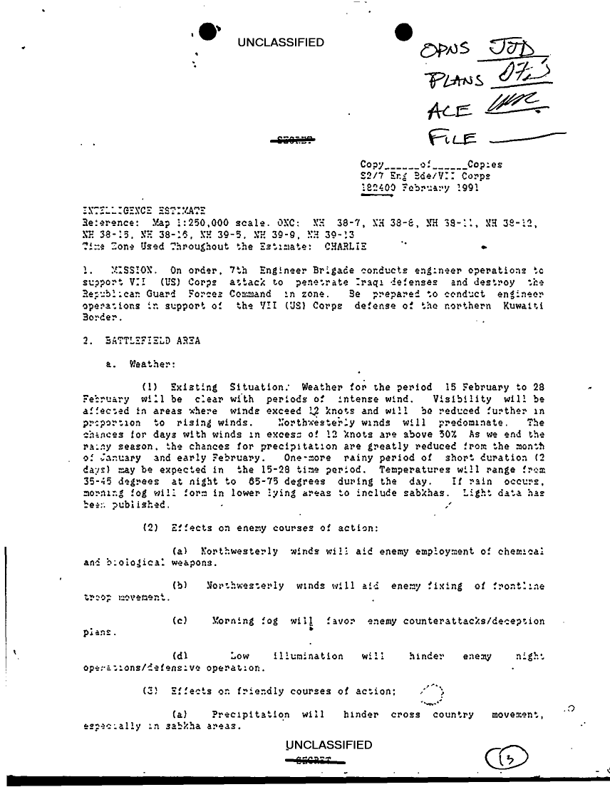 Document 9 f:/Week-24/BX000249/ENGR PLAN INTEL/intelligence estimate 7th eng bde 18 feb 91:07269614230834