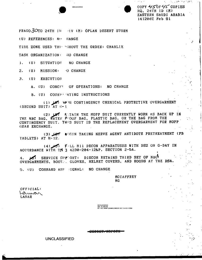 Subject = FRAGO 30 TO 24TH ID OPLAN DESERT STORM