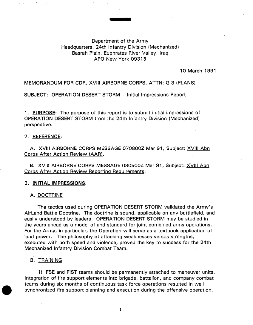 Subject = 24TH MECH INF DIV OPERATION DESERT STORM AFTER A