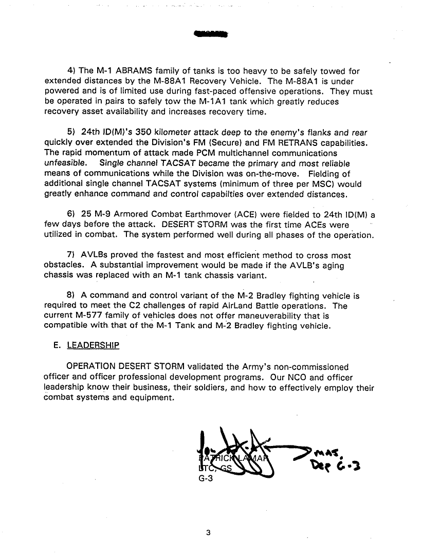 Subject = 24TH MECH INF DIV OPERATION DESERT STORM AFTER A