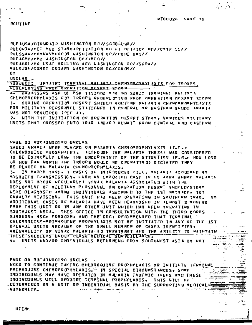 Subject = UPDATE MALATRA GUIDELINES FOR DESERT SHIELD