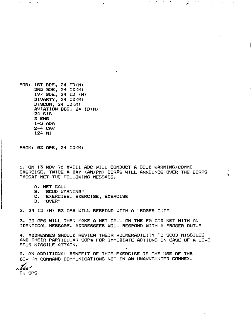 Document 1 f:/Week-20/BX001412/G3 INCOMING CORRESPONDENCE NOV 90/13 nov 90 xviii abc conduct a scud waring commo :08029615060437