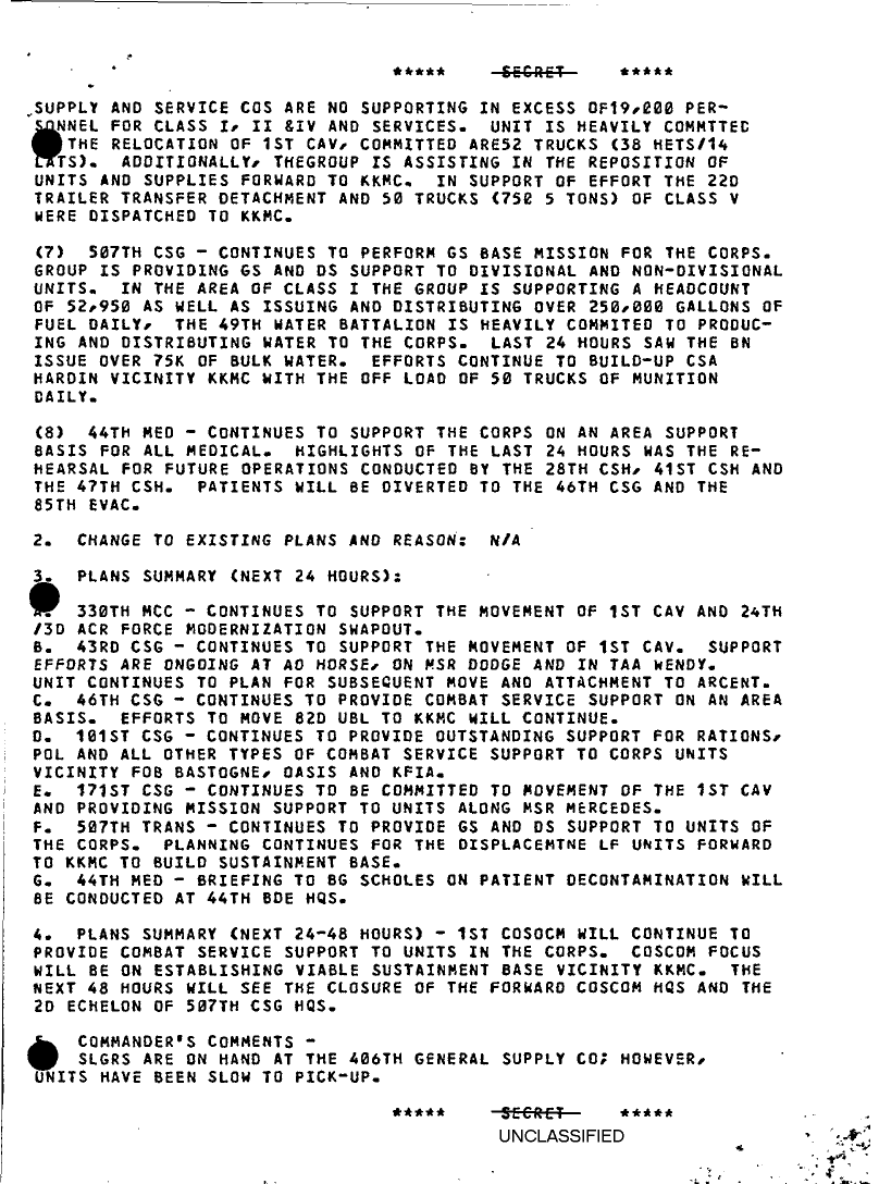 Document 4 f:/Week-08/BX000015/DUTY LOG 1 COSCOM SITREPS G3 JAN 91/significant activities:08099611160858