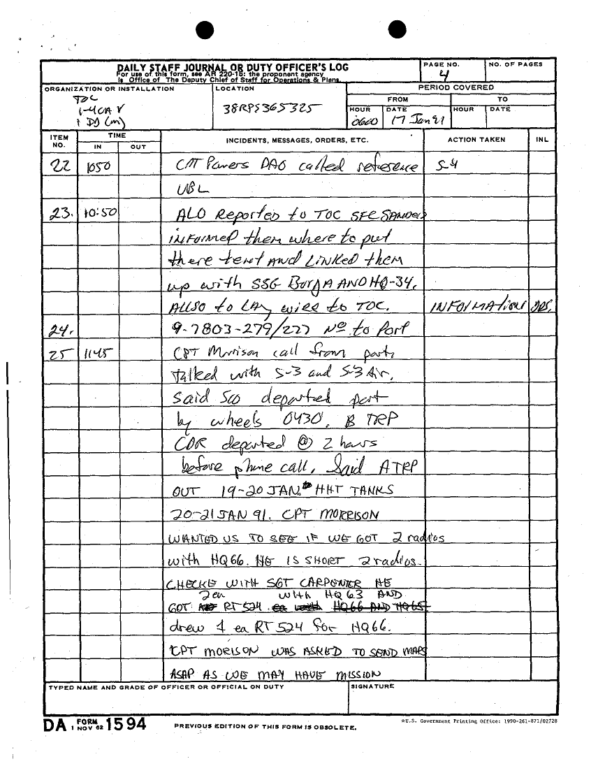 Folder Title = DAILY JOURNAL-STAFF JOURNAL AND TACTICAL OPERATIONS CENTER -TOC- LOGS DESERT STORM 17 JAN 91