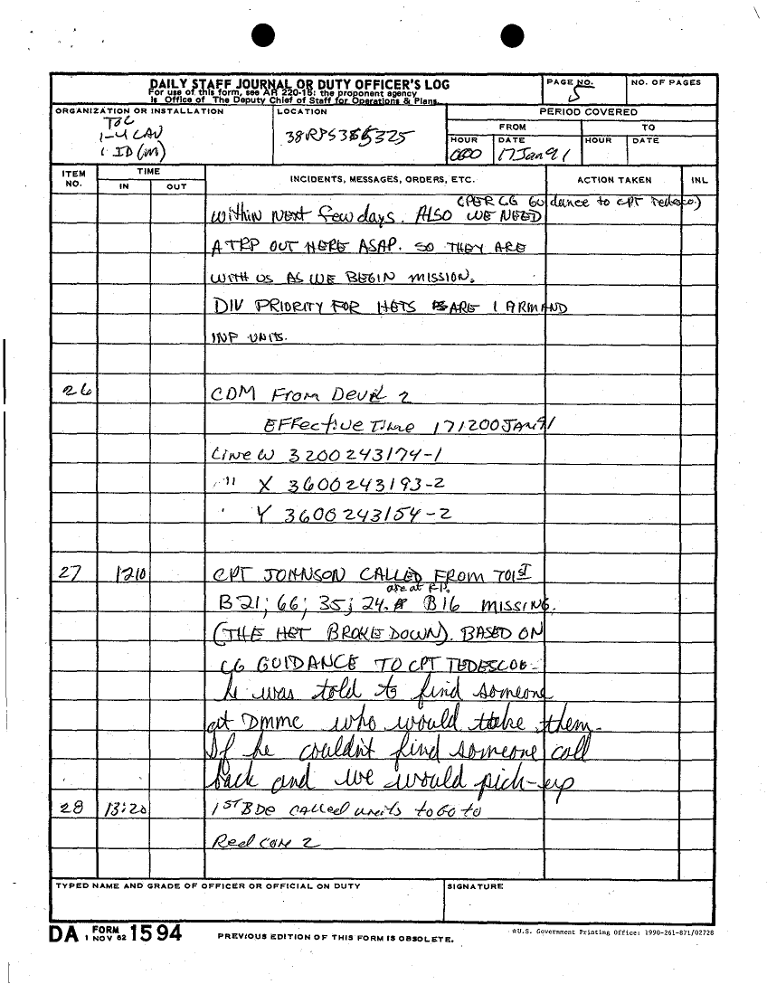 Folder Title = DAILY JOURNAL-STAFF JOURNAL AND TACTICAL OPERATIONS CENTER -TOC- LOGS DESERT STORM 17 JAN 91