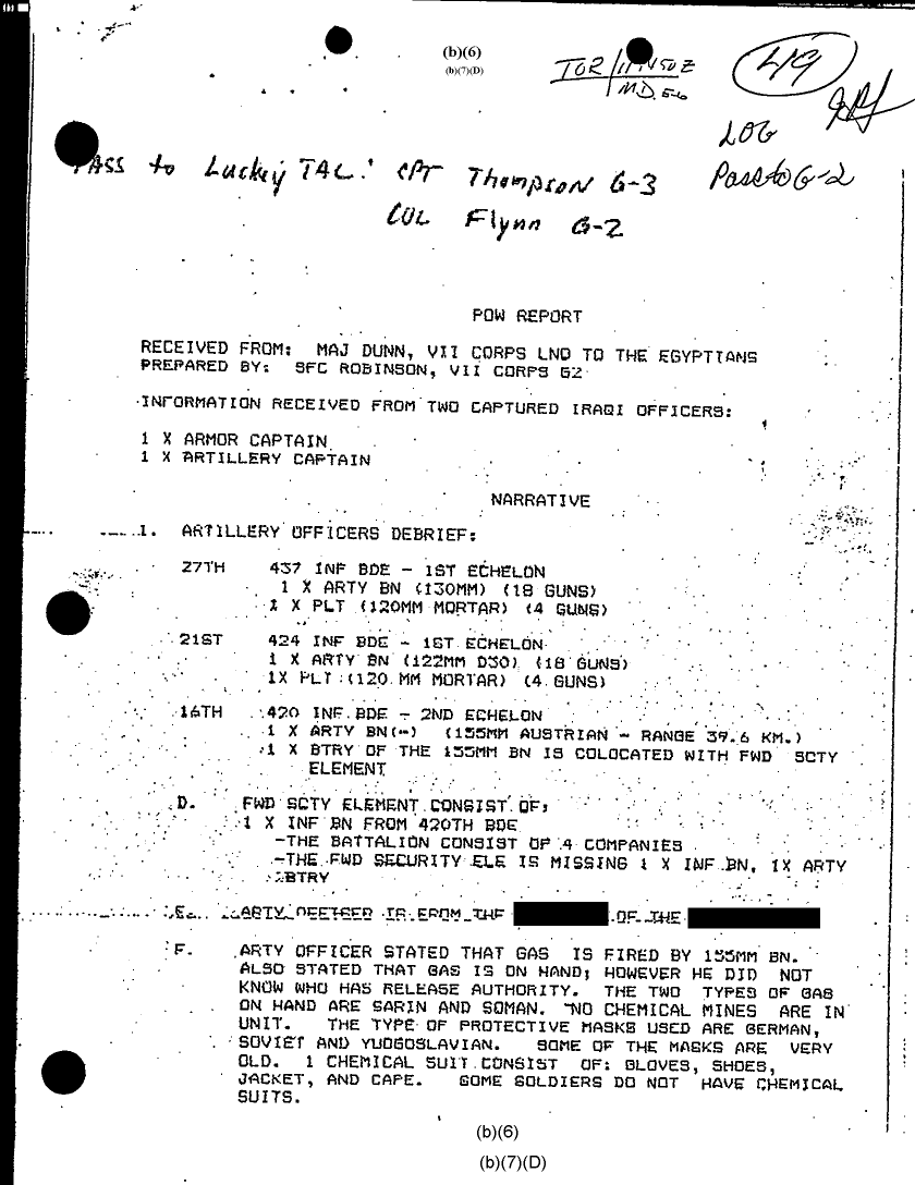 Document 8 f:/Week-28/BX000410/TACTICAL OPERATIONS CENTER LOGS - LUCKY TAC JOURNALS 8-10 FEB 91/pow report info from captured iraqi officers:08099611155242