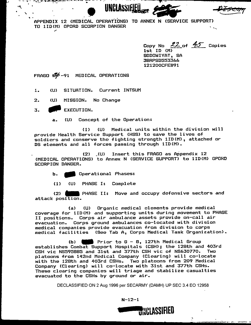 Document 20 f:/Week-28/BX001044/HQ 1ST ID -M- FRAGOS 52-91 TO 142-91 FEB-MAR 91/frago 10 91 medical operations:08099611155343