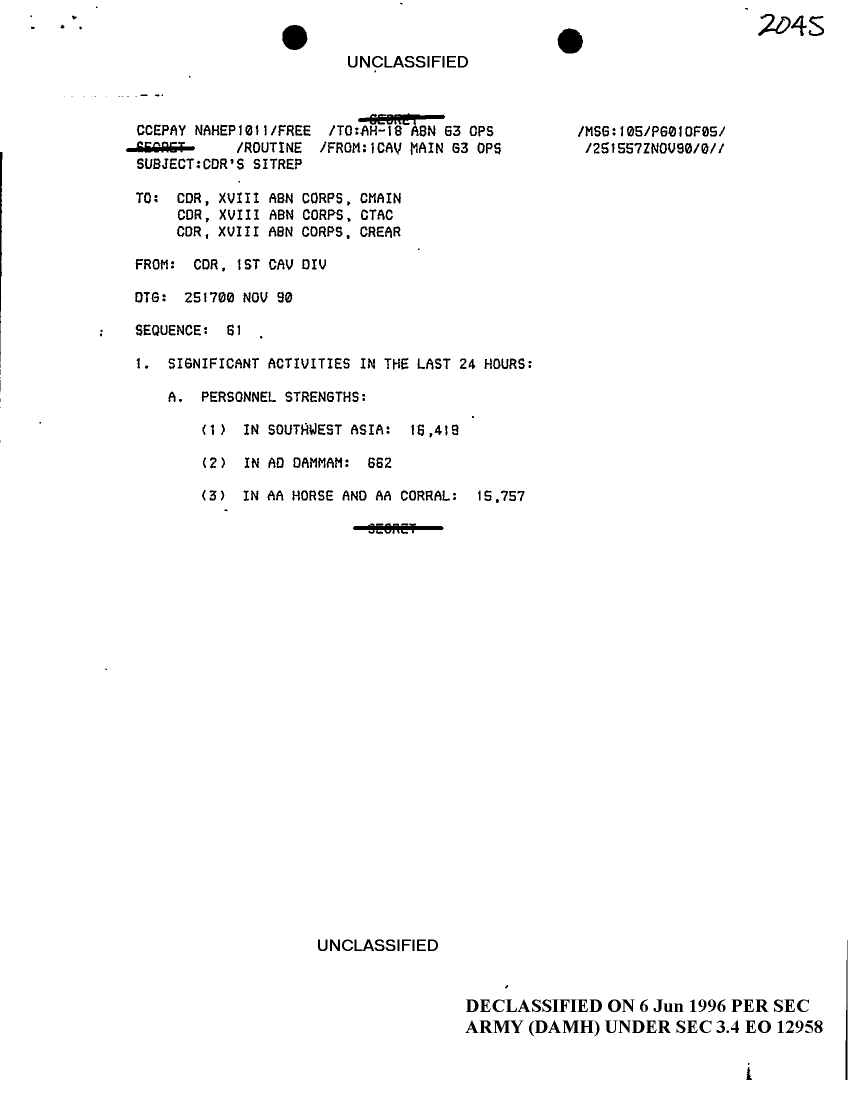 Document 5 f:/Week-18/BX000038/DUTY LOG 1 CAV DIV SITREPS G3 NOV 90/situation report 1 cav 25 nov 90:08169613341620