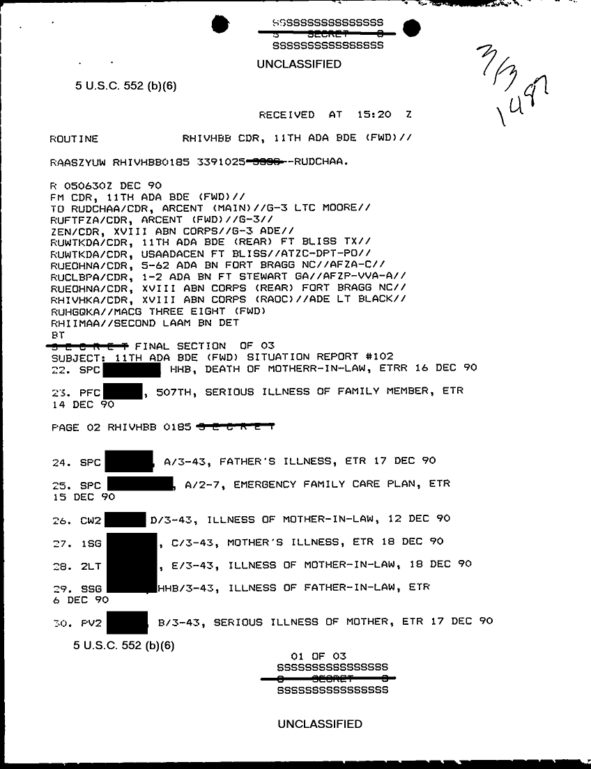 Document 11 f:/Week-29/BX000404/TACTICAL OPERATIONS CENTER LOGS - MSG FILE LOGS 6-7 DEC 90/11th ada bde sitrep 102:08169613341116