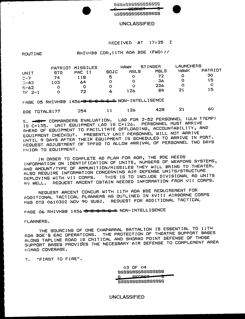 Document 9 f:/Week-29/BX000429/TACTICAL OPERATIONS CENTER LOGS - MSG FILE LOGS 28 NOV 90/11th ada bde situation report 94:08169613342831