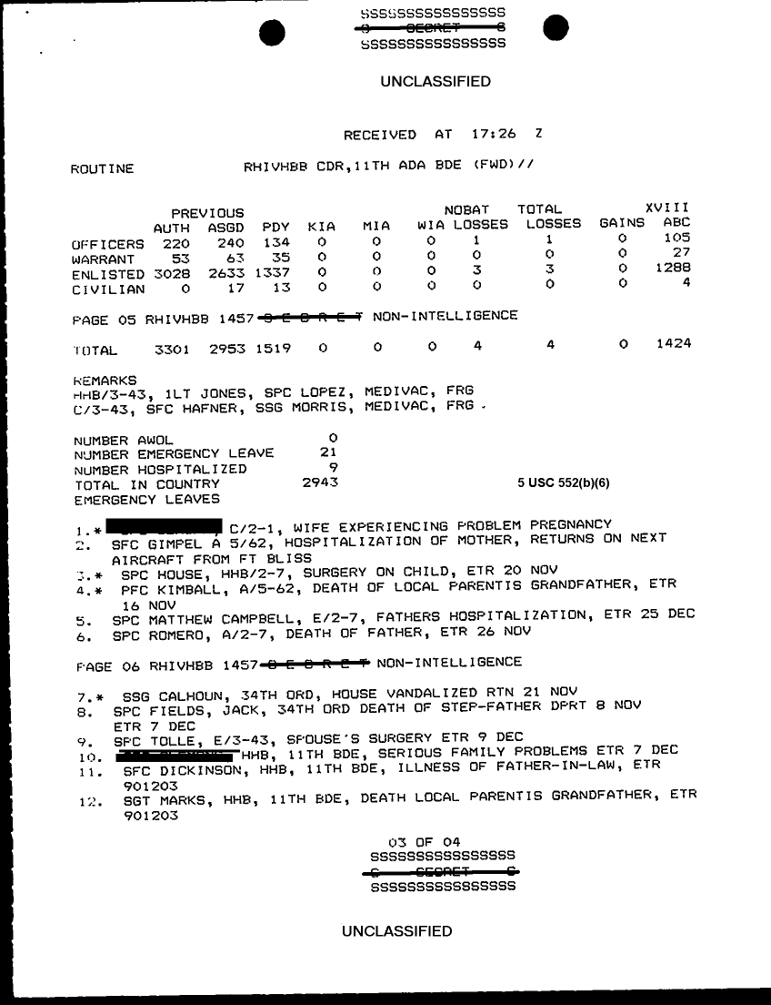 Document 9 f:/Week-29/BX000429/TACTICAL OPERATIONS CENTER LOGS - MSG FILE LOGS 28 NOV 90/11th ada bde situation report 94:08169613342831