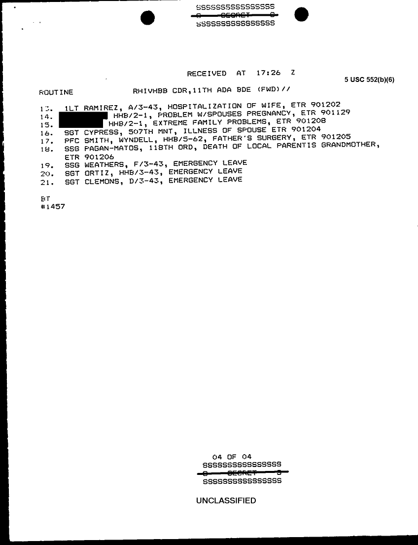 Document 9 f:/Week-29/BX000429/TACTICAL OPERATIONS CENTER LOGS - MSG FILE LOGS 28 NOV 90/11th ada bde situation report 94:08169613342831