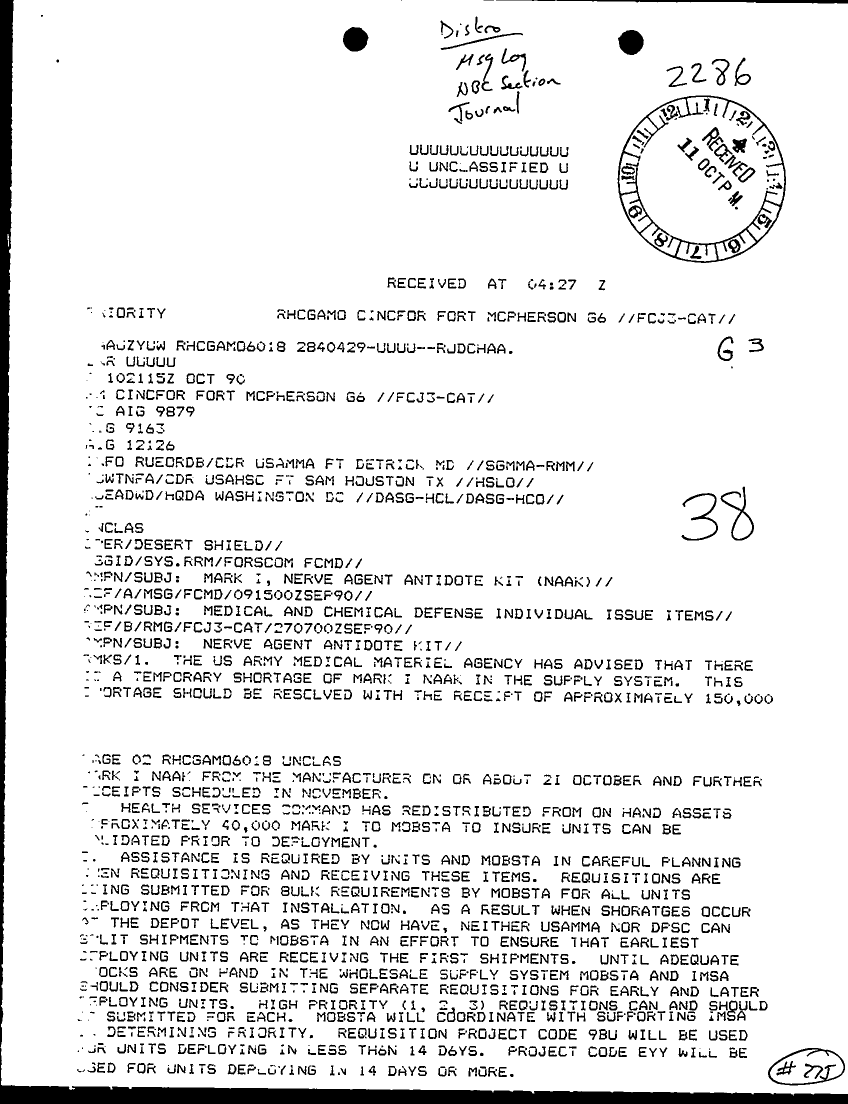 Document 2 f:/Week-29/BX000423/TACTICAL OPERATIONS CENTER LOGS - ARCENT MSG LOGS 11 OCT 90/nerve agent antidote kit:08169613344342