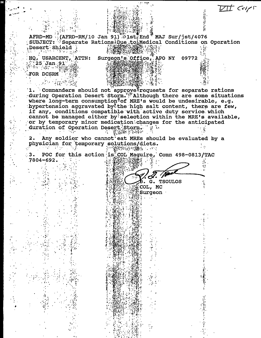 Document 7 f:/Week-29/BX000403/GEN FIN ADMIN CORRESPONDENCE FILE - OUTGOING FILE/separate rations due to medical conditions:08169613345550
