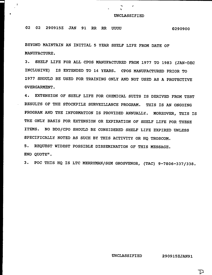 Document 2 f:/Week-29/BX000420/HISTORIANS BACKGROUND MATERIAL FILES - G3 NBC MIS 4 OF 4/shelf life suit chemical protective:08169613352061