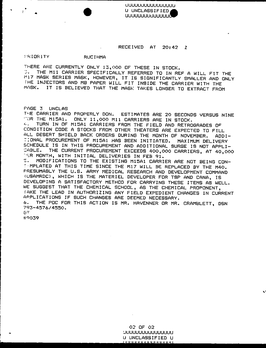 Document 2 f:/Week-30/BX000445/TOC LOGS - MSG FILE LOGS 7-8 NOV 90/m15a1 mask carrier repair-replacemen:08239614355019