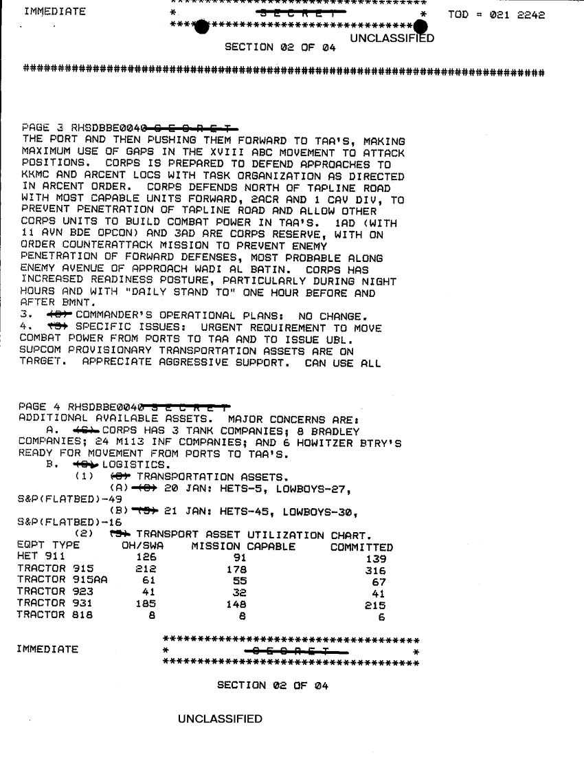 Document 14 f:/Week-30/BX000436/DAILY JOURNAL ARCENT 23 JAN 91/commanders sitrep combat 4:08239614361533