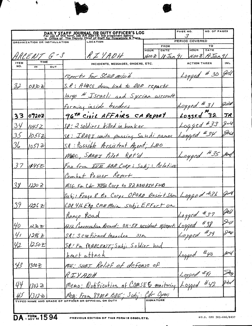 Document 4 f:/Week-30/BX000436/DAILY JOURNAL ARCENT 18-19 JAN 91/daily staff journal or duty officer logs:08239614362336