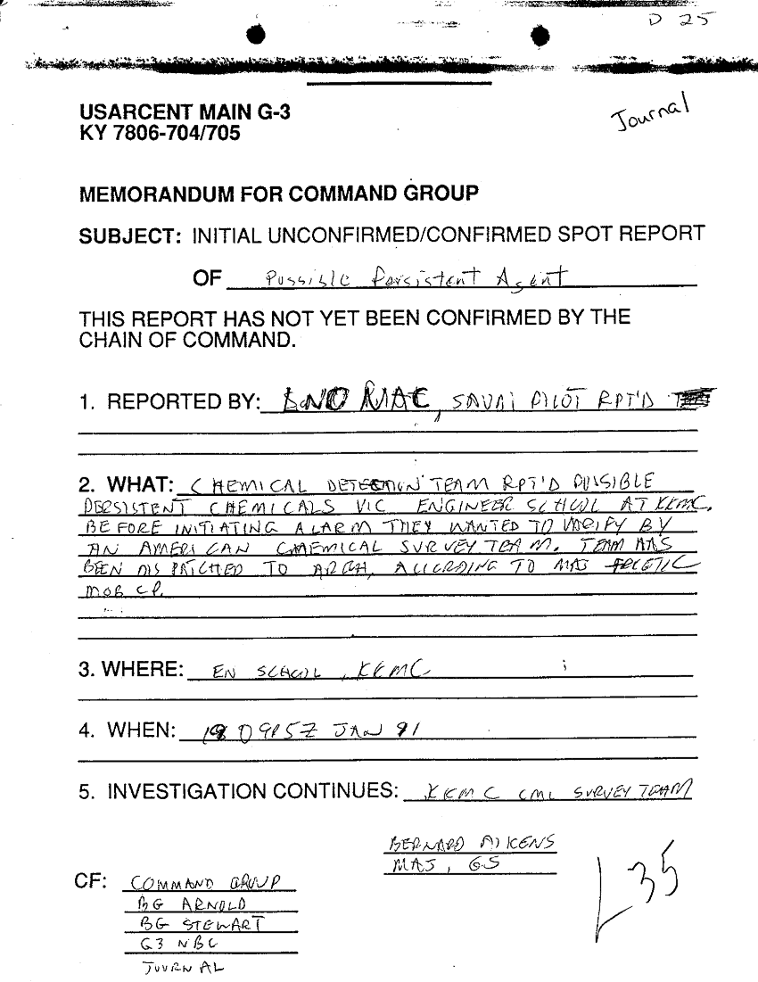 Document 1 f:/Week-30/BX000436/DAILY JOURNAL ARCENT 24 JAN 91/initial inconfirmed confirmed spot report:08239614365549