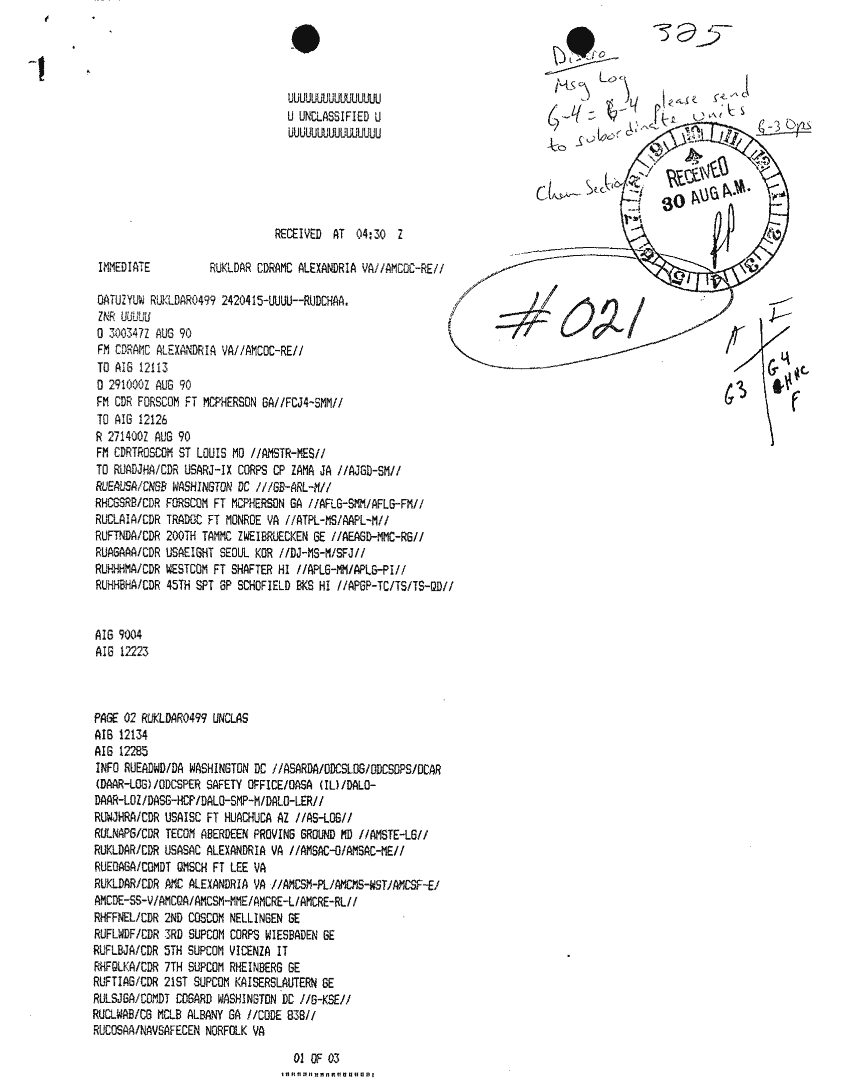 Folder Title = TOC LOGS MSG FILE LOGS 30 AUG 90 PART I