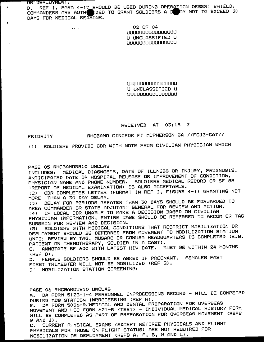 Document 6 f:/Week-29/BX000423/TACTICAL OPERATIONS CENTER LOGS - ARCENT MSG LOGS 7 OCT 90/disposition of health records 6 oct 90:08239614353910