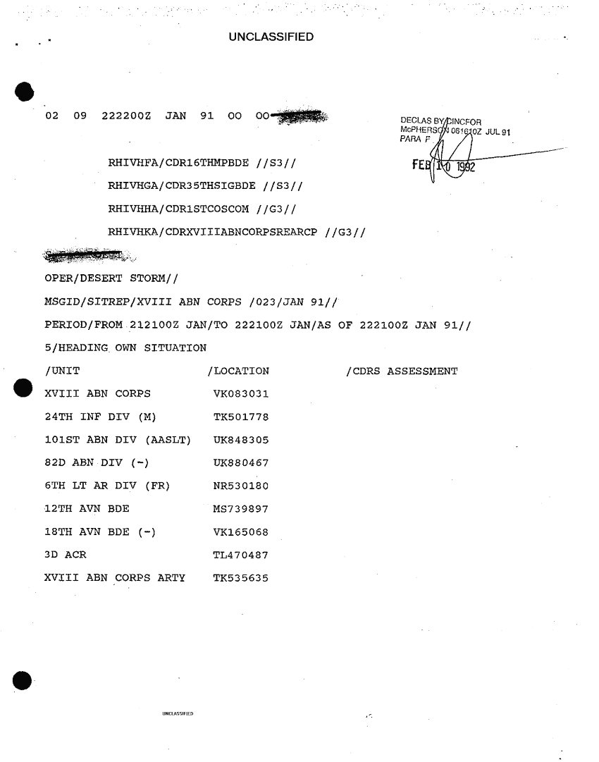 Document 9 f:/Week-18/BX000041/AFTER ACTION REPORTS/sitrep xviii abn corps 23 jan 91:09139616135959