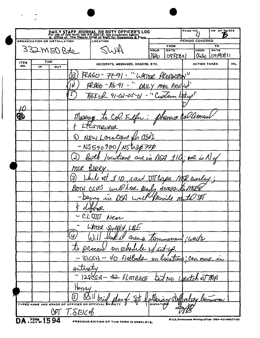 Document 9 f:/Week-34/BX005159/DA FORM 1594-DAILY STAFF JOURNAL OR DUTY OFFICERS LOG -1 FEB-21 FEB 91/daily staff journal or duty officer log:09139616141766