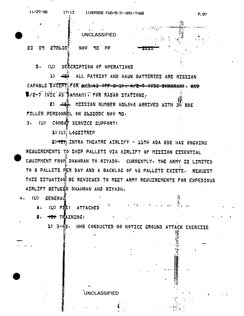 Document 8 f:/Week-32/BX000499/COMMAND REPORTS SITREPS 11TH ADA BDE 7 NOV - 7 DEC 90/11th ada bde situation report no 94 26 to 27 n:09139616144377