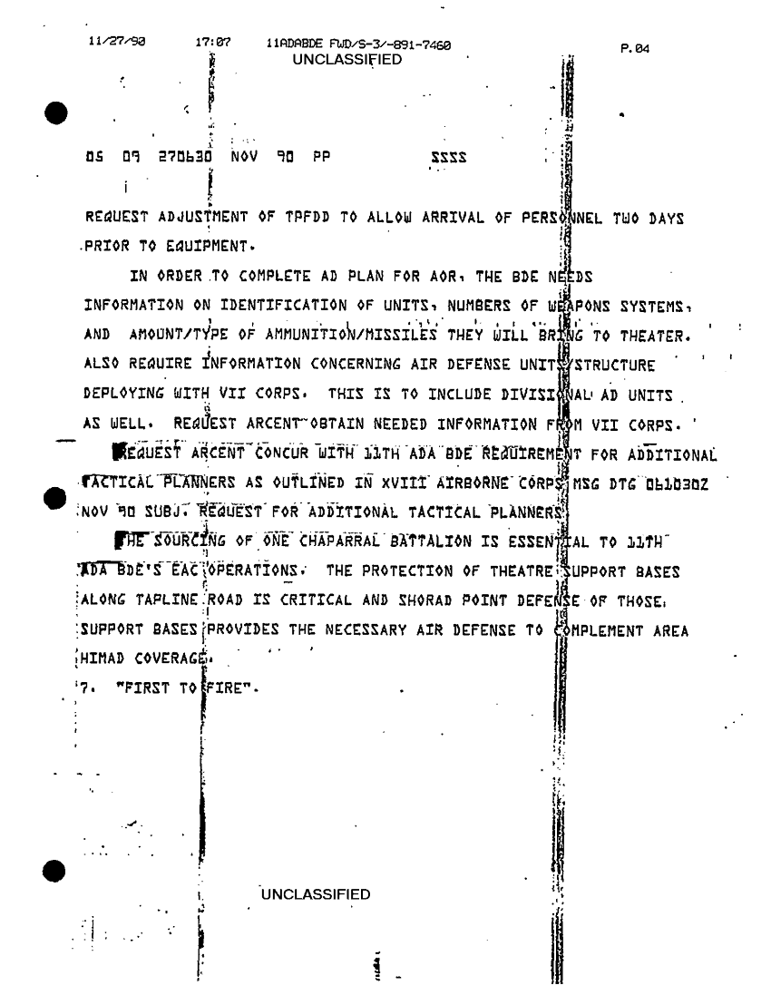 Document 8 f:/Week-32/BX000499/COMMAND REPORTS SITREPS 11TH ADA BDE 7 NOV - 7 DEC 90/11th ada bde situation report no 94 26 to 27 n:09139616144377