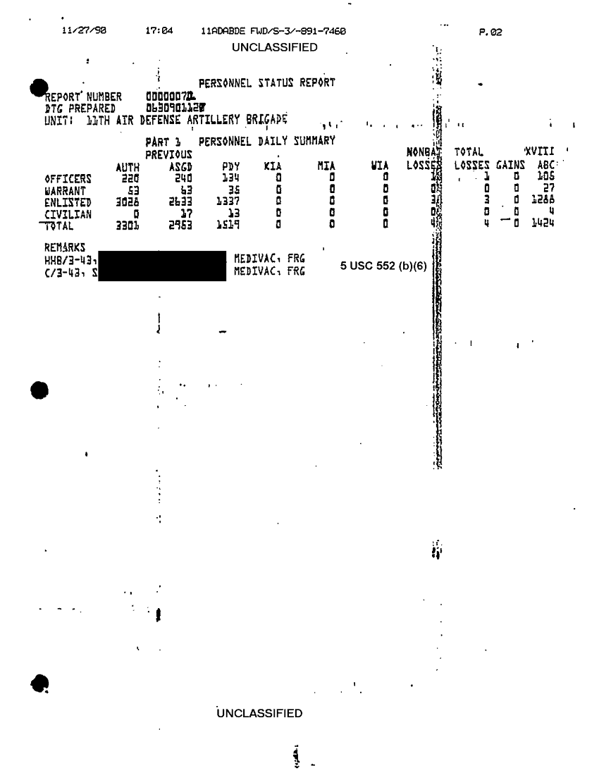 Document 8 f:/Week-32/BX000499/COMMAND REPORTS SITREPS 11TH ADA BDE 7 NOV - 7 DEC 90/11th ada bde situation report no 94 26 to 27 n:09139616144377