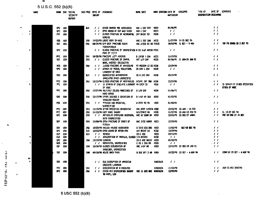 Document 38 f:/Week-31/BX000460/MEDSTAT-SITREPS - FEBRUARY - 2/ods patient status report 22feb91:09139616121511