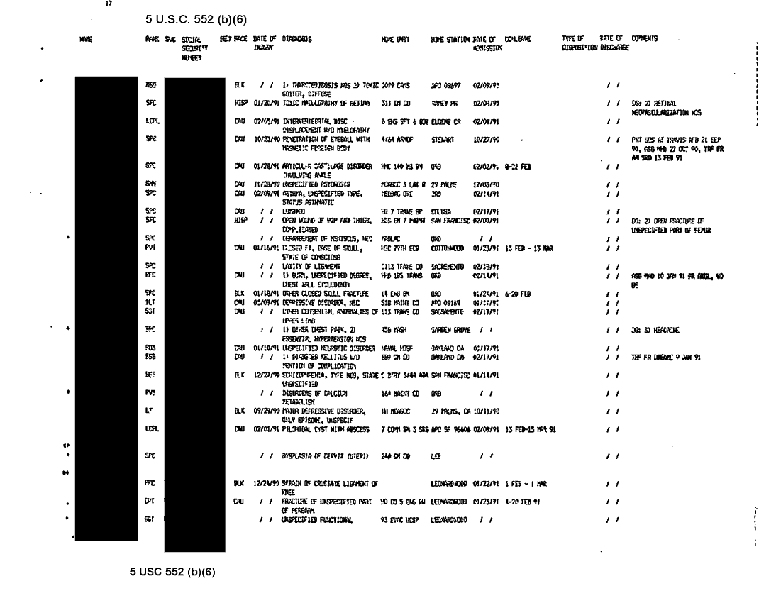 Document 38 f:/Week-31/BX000460/MEDSTAT-SITREPS - FEBRUARY - 2/ods patient status report 22feb91:09139616121511
