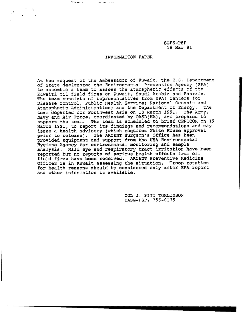 Document 6 f:/Week-34/BX005009/CAT TASKINGS-15101-15125/cat tasking health risks in kuwait:09139616151691