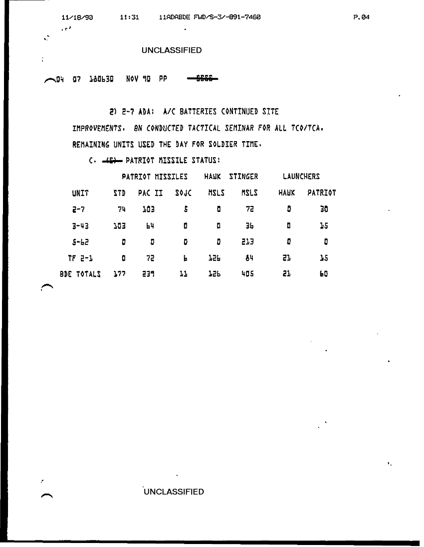 Document 7 f:/Week-32/BX000499/COMMAND REPORTS SITREPS 11TH ADA BDE 6 OCT 90-23 NOV 90/sitrep 11th ada no 85 17 to 18 nov 90:09139616152695