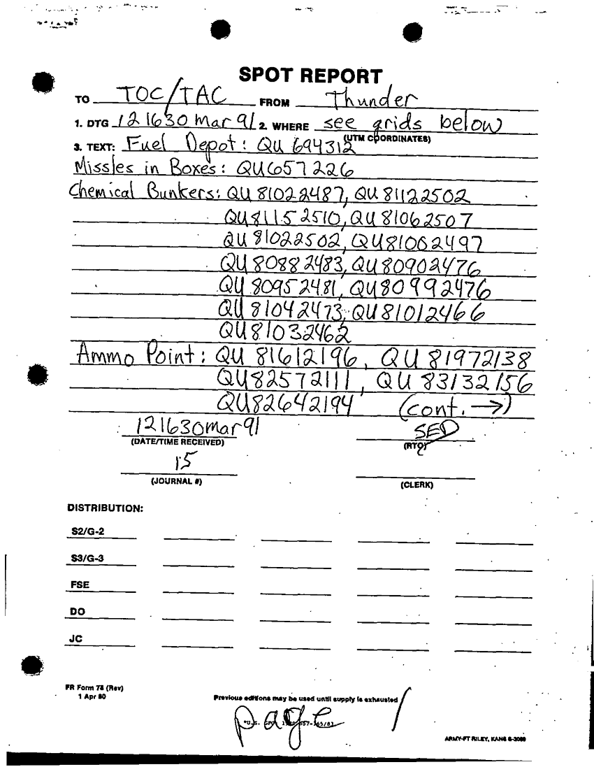 Subject = SPOT REPORT 12 MAR 91