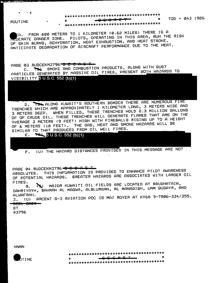 Document 2 f:/Week-28/BX000410/TACTICAL OPERATIONS CENTER LOGS - LUCKY TAC JOURNALS 11-14 FEB 91/kuwait oil fire gas and smoke hazards to army av:09139616142569