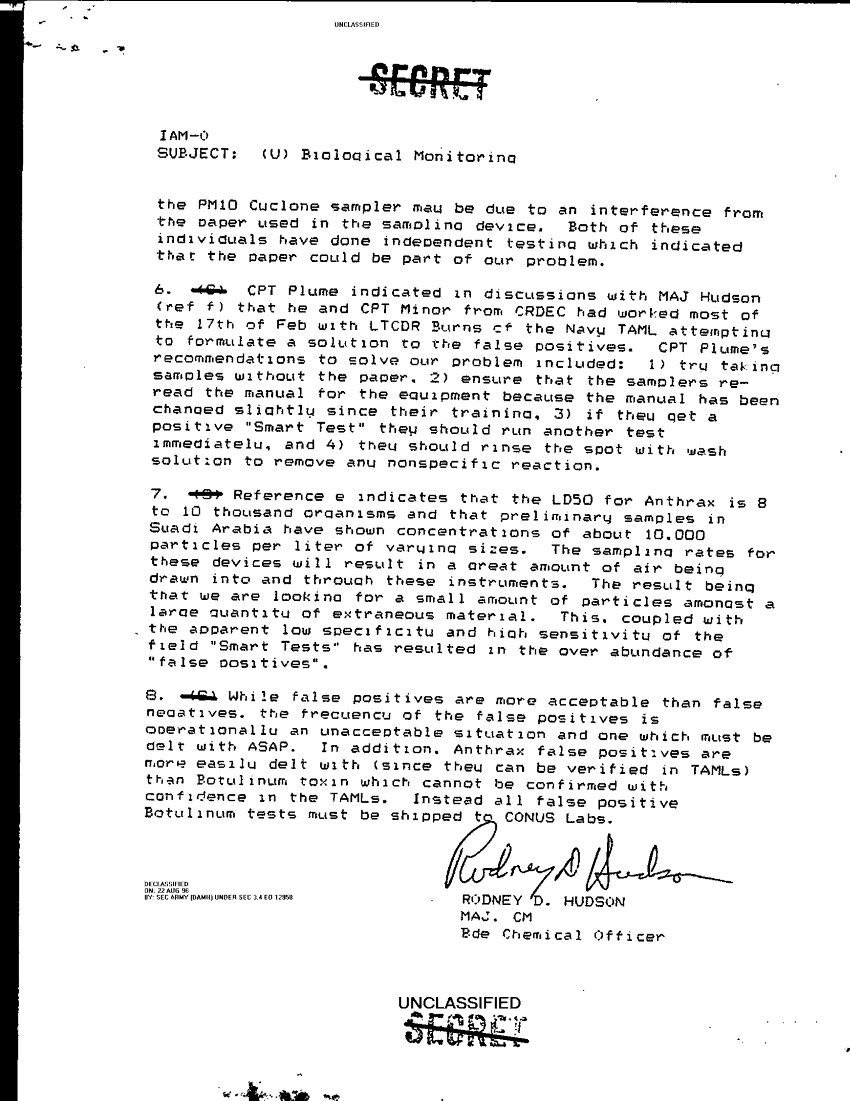 Document 2 f:/Week-29/BX000420/HISTORIANS BACKGROUND MATERIAL FILES - G3 NBC MIS 1 OF 4/biological monitoring 18 feb 91:09139616121310