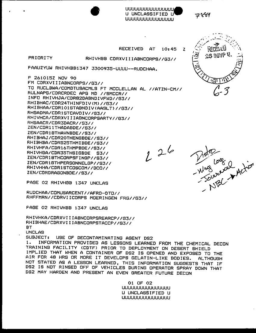 Document 4 f:/Week-30/BX000445/TOC LOGS-MSG FILE LOGS 25-26 NOVOV 90/use of decontaminating agent ds2:09139616122314