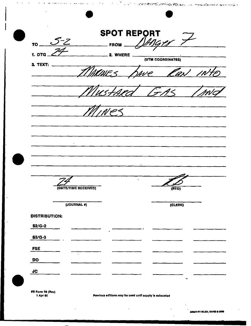 Document 1 f:/Week-28/BX001067/MISC-DAILY STAFF JNL-SPOT REPORT-CDR REP 24 FEB 91/spot report mustard gas landmines:09139616122615