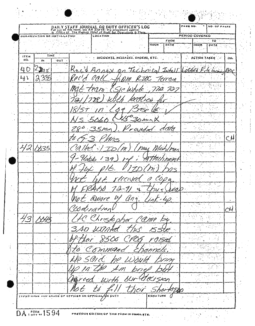 Folder Title = DAILY STAFF JOURNALS 19-27 JAN 91