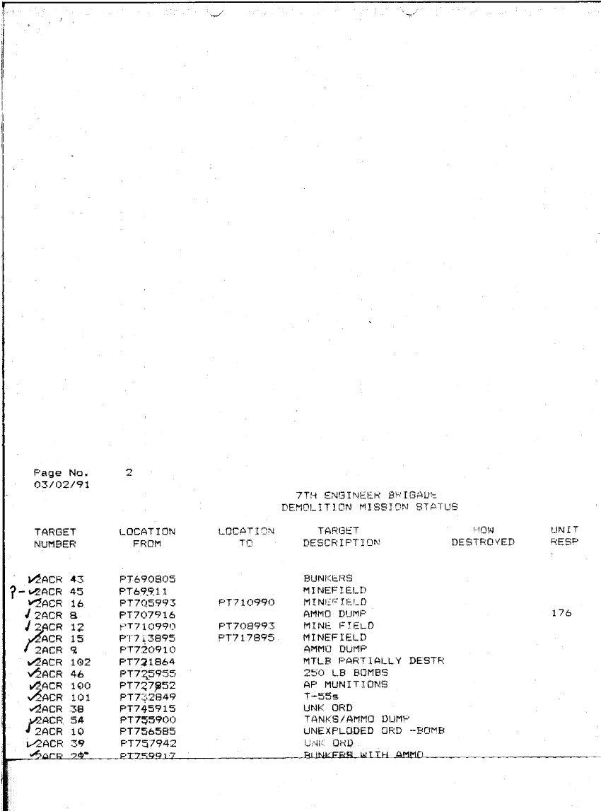 Document 17 f:/Week-25/BX000252/DAILY STAFF JOURNAL 2 MAR TO 15 MAR 1991 SITRREPS/7th engineer brigade demolition mission status:09139616131441