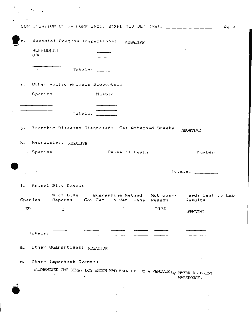 Document 35 f:/Week-32/BX000481/COMMAND REPORTS 422SD MED DET VETERINARY SVCS COMMAND REPORT/report of vet activity app a:0906961515091