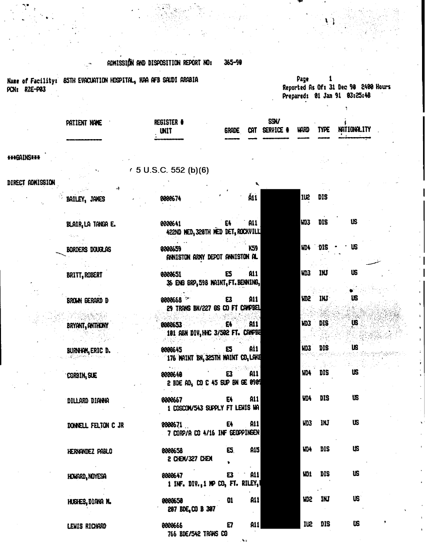 Document 29 f:/Week-32/BX000482/MEDSTAT - SITREPS DEC 90 4 OF 6/patient summary:0906961515135