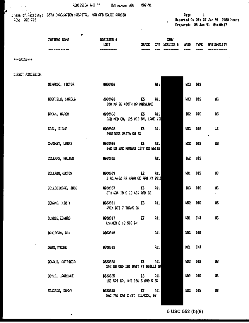 Document 8 f:/Week-31/BX000460/MEDSTAT- SITREPS - JANUARY - 1/patient alpha roster 7 jan 91:09069615152517