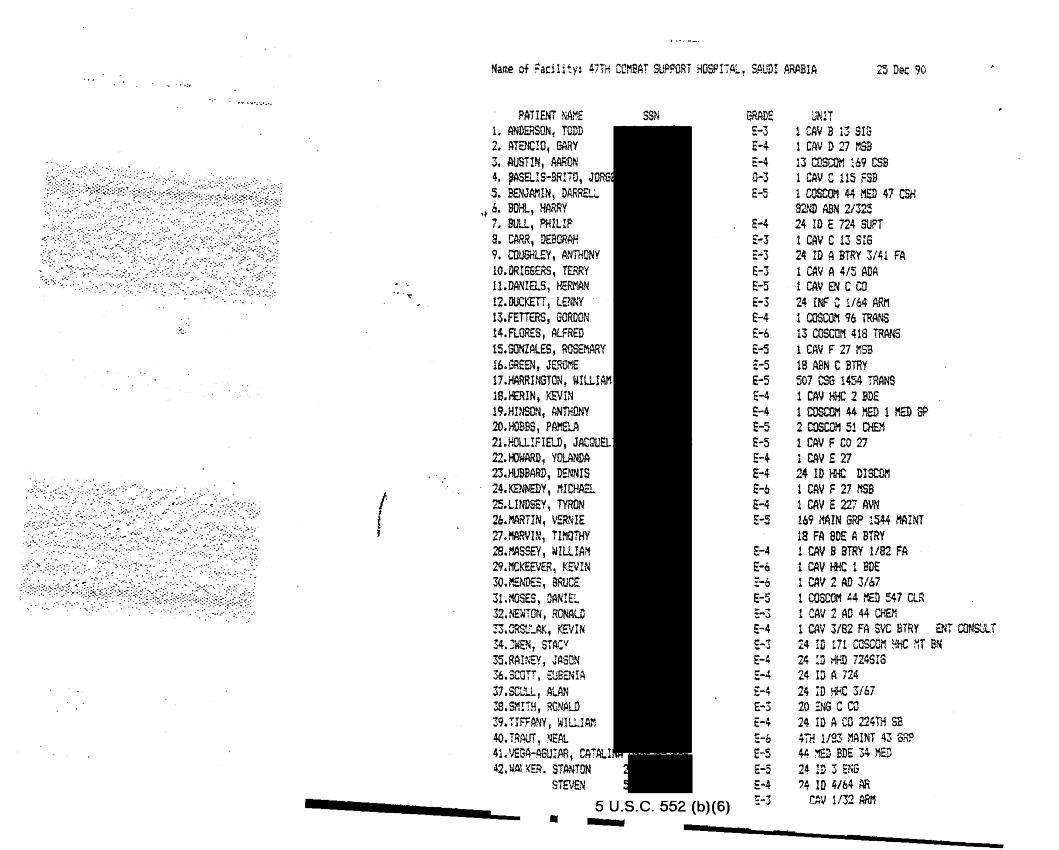 Document 22 f:/Week-32/BX000482/MEDSTAT - SITREPS DEC 90 3 OF 6/patient alpha roster 25 dec 90:09069615153326