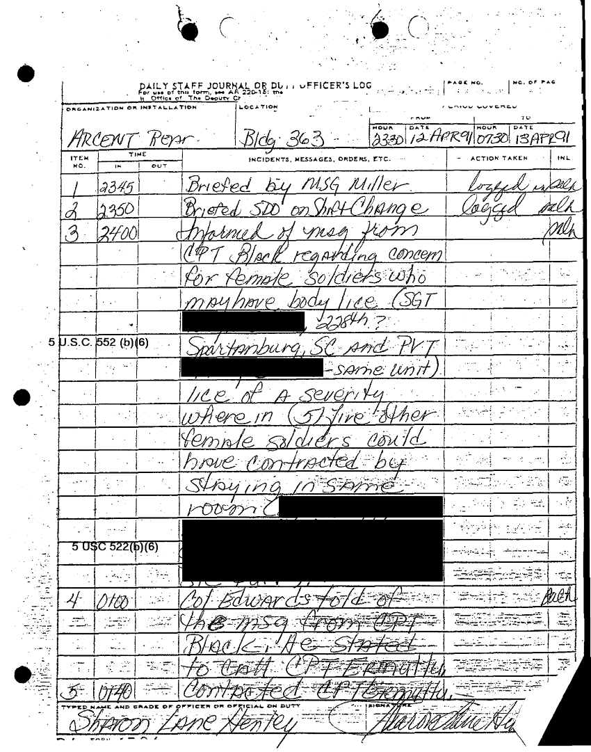 Document 4 f:/Week-32/BX000489/DAILY JOURNAL ARCENT REAR OPN CTR 27 MAR - 28 MAY 91/daily staff journal arcent rear 12 to 13 apr 9:09069615155547