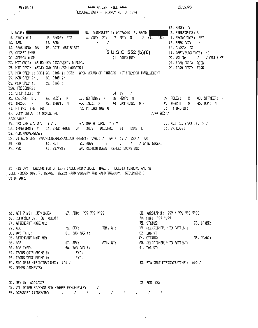 Document 18 f:/Week-32/BX000482/MEDSTAT - SITREPS DEC 90 4 OF 6/patient file:09069614061216