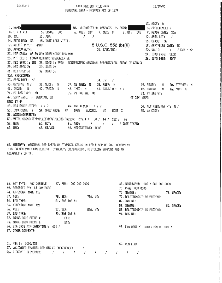Document 18 f:/Week-32/BX000482/MEDSTAT - SITREPS DEC 90 4 OF 6/patient file:09069614061216