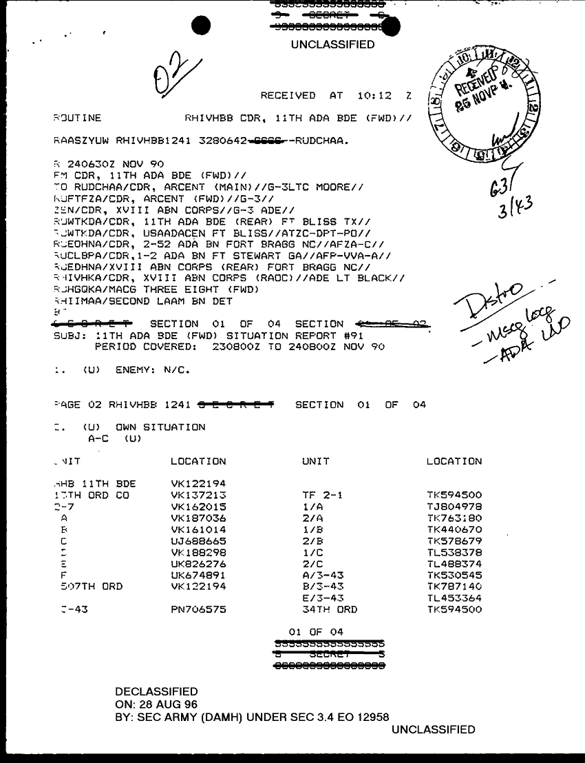 Document 11 f:/Week-30/BX000445/TOC LOGS-MSG FILE LOGS 25-26 NOVOV 90/11th ada bde fwd situation report:09069615152618