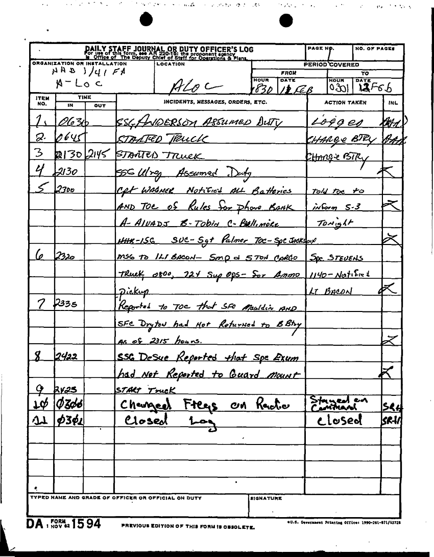 Document 21 f:/Week-22/BX001431/DAILY STAFF JOURNALS - 24TH INF - JAN-FEB 91/daily staff journal hhb 1 41 a loc:09069614062522